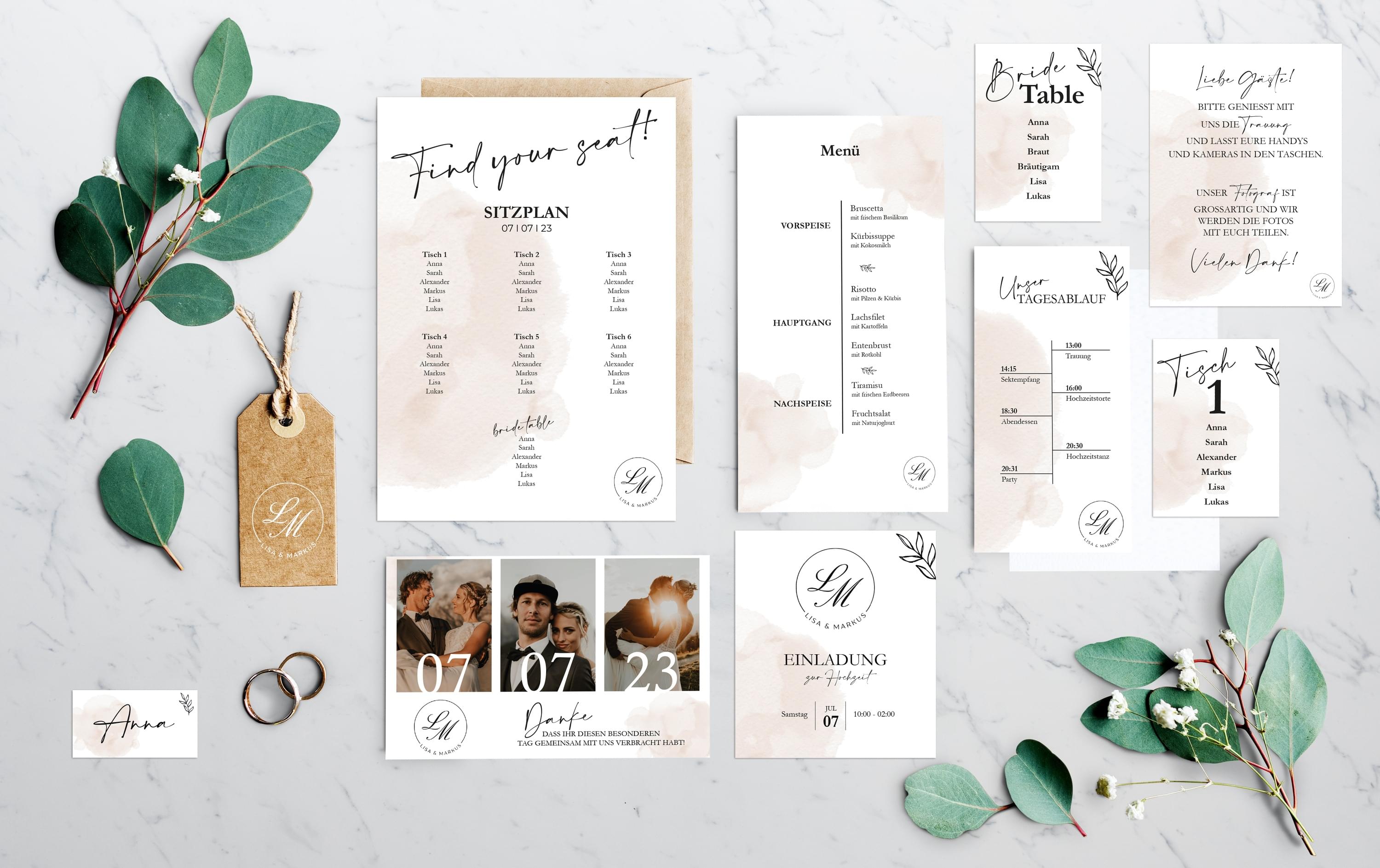 bis zur Auslieferung eurer Papeterie begleitet. Jedes Detail wird mit liebevoller Sorgfalt und höchster Aufmerksamkeit behandelt, um sicherzustellen, dass eure Hochzeitspapeterie nicht nur eure Erwartungen erfüllt, sondern sie übertrifft.